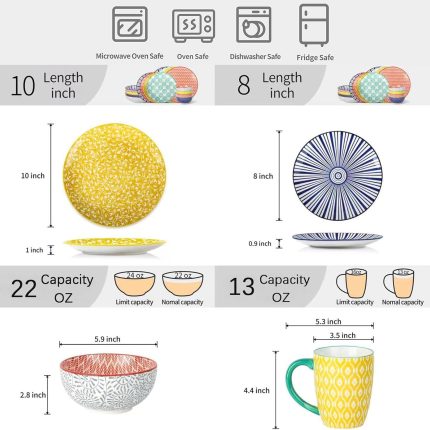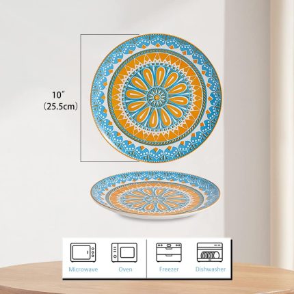 Dinner Plates Ceramic Plate Set – 10 Inch Large Porcelain Round Plate Sets of 6 – Flat Colorful Pattern Dining Plates for Kitchen | Family – Dishwasher | Microwave | Oven Safe