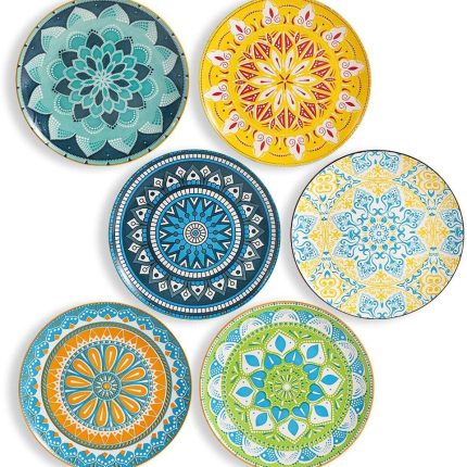 Dinner Plates – Mismatched Colorful Dinnerware Set of 6 – Fun Decorative Cute Boho Kitchen Dishes – Zero Lead & Cadmium – 10.5 Inch Diameter