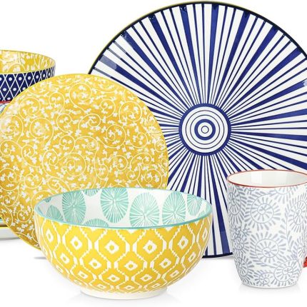 Ceramic Dinnerware Sets for 4, 16 Pieces Plates and Bowls Sets, Dishes set for 4-Chip and Scratch Resistant, Dishwasher&Microwave Safe, Assorted Colors