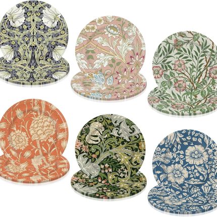 6-Piece 8.5″ Glass Lunch Plates Lightweight, Scratch Resistant – Botanical Stripes