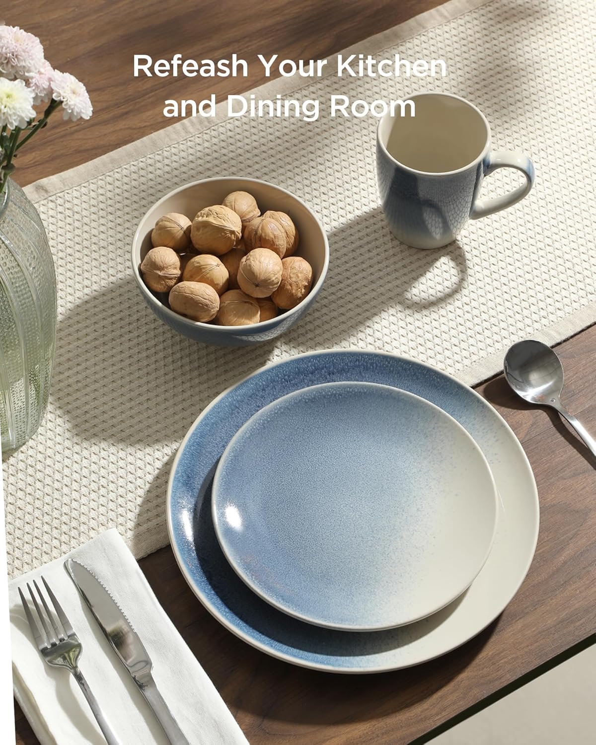 - [Long-lasting & stackable]: Made from durable stoneware, this dishware set is designed to withstand daily use while maintaining its beauty. The stackable design saves cabinet space and makes storage easy